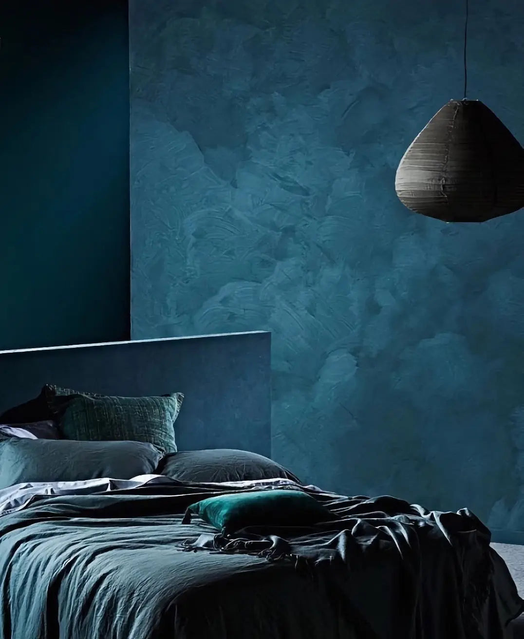 Juniper is a petrol green-blue limewash with rich depth and a natural, grounding elegance. It pairs beautifully with plants and white trims, bringing a sophisticated balance to any space. A lighter version is Heron, a greener one is Laurel, and a bluer alternative is Nightshade.