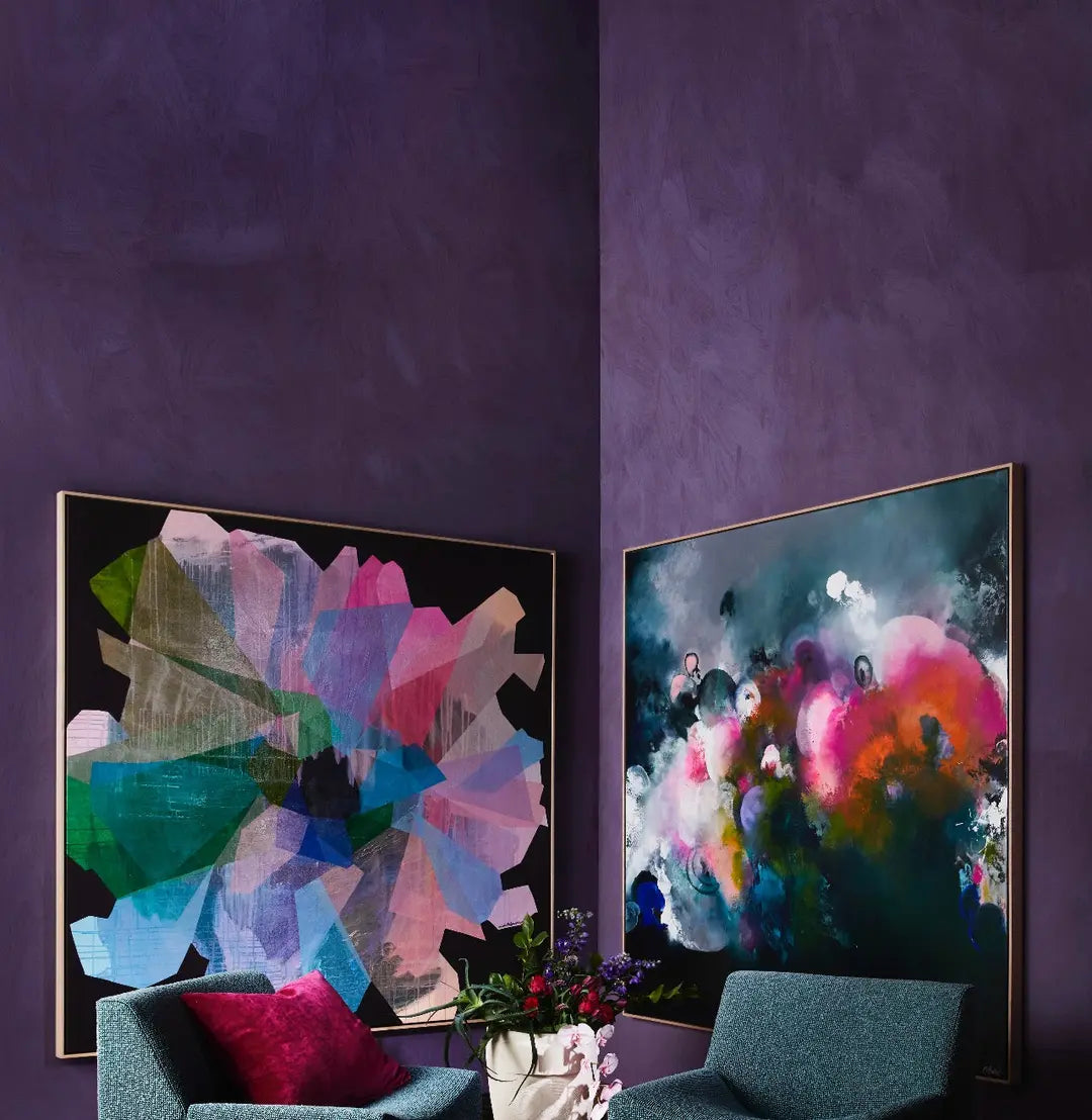 On the wall, its purple tones become more pronounced, adding depth and a confident, expressive character to the space.