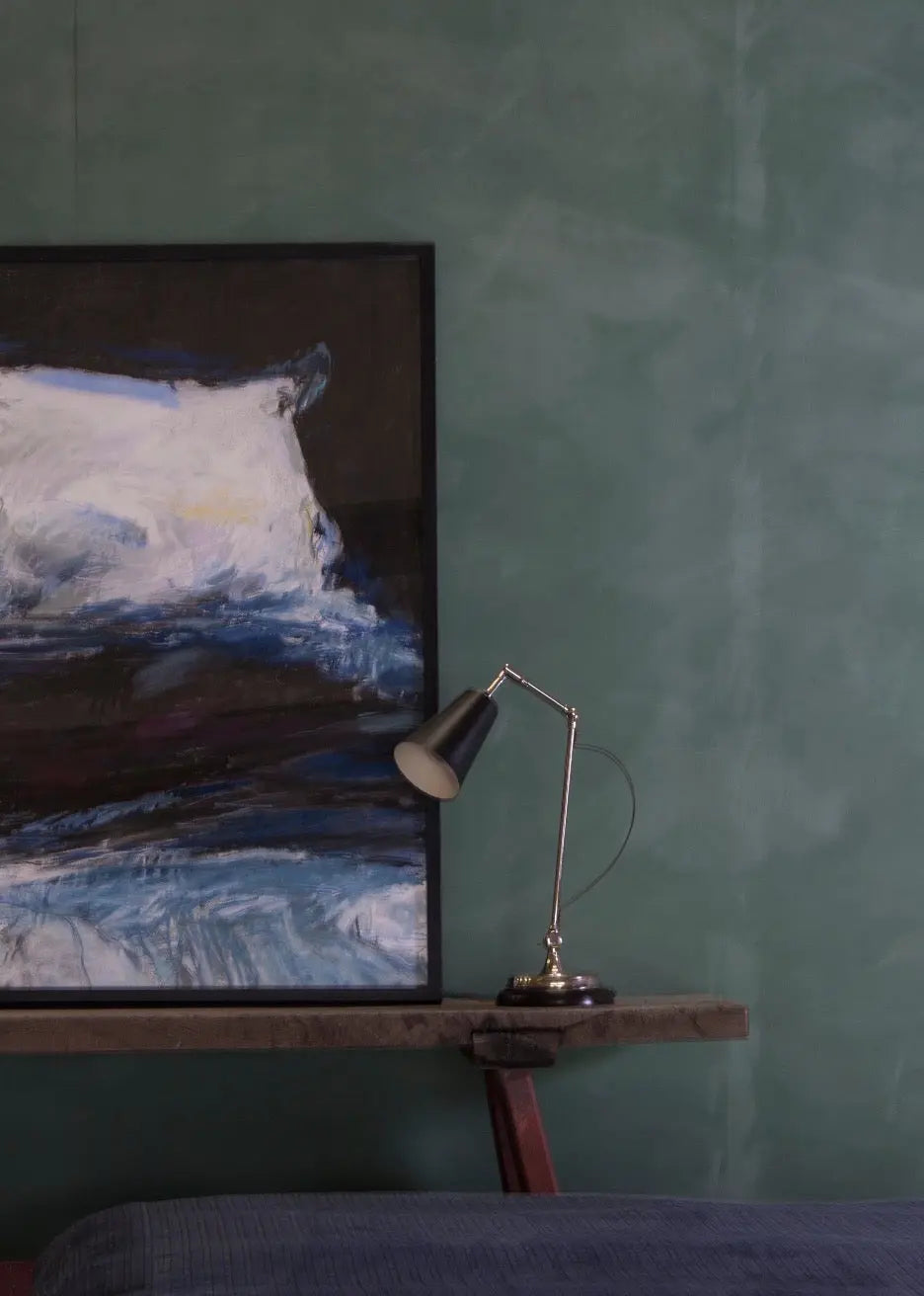 Fir is a deep forest-green limewash with a subtle grey undertone, creating a refined and natural depth reminiscent of bottle green. The green tones become more pronounced on the wall, adding richness and sophistication to any setting. A greener alternative is Myrtle, and a darker version is Thistle Leaf.
