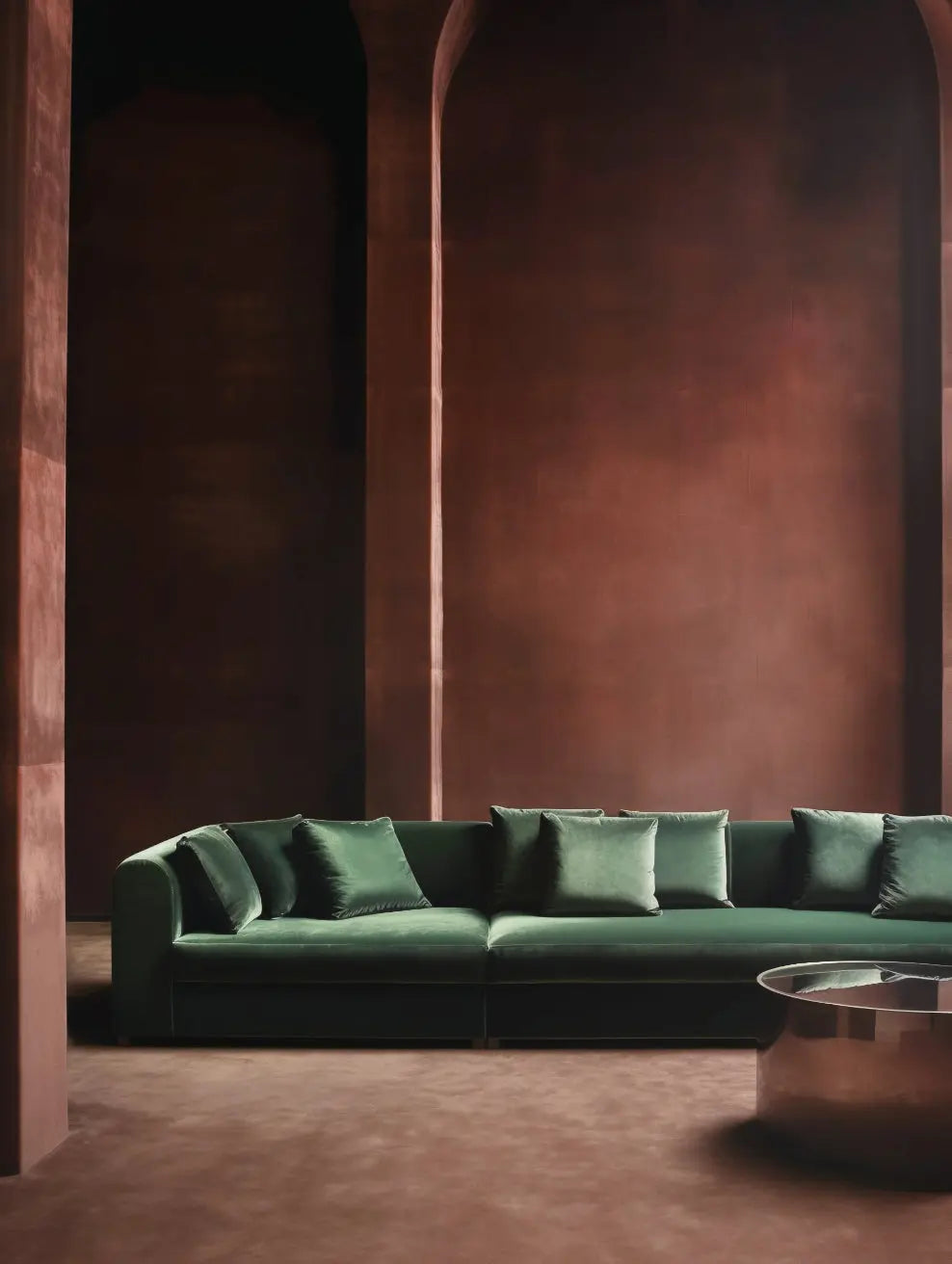 Na stěně jeho zemité červené podtóny vytvářejí hřejivou a výrazovou atmosféru, dodávají prostoru hloubku a jemně exotický charakter.